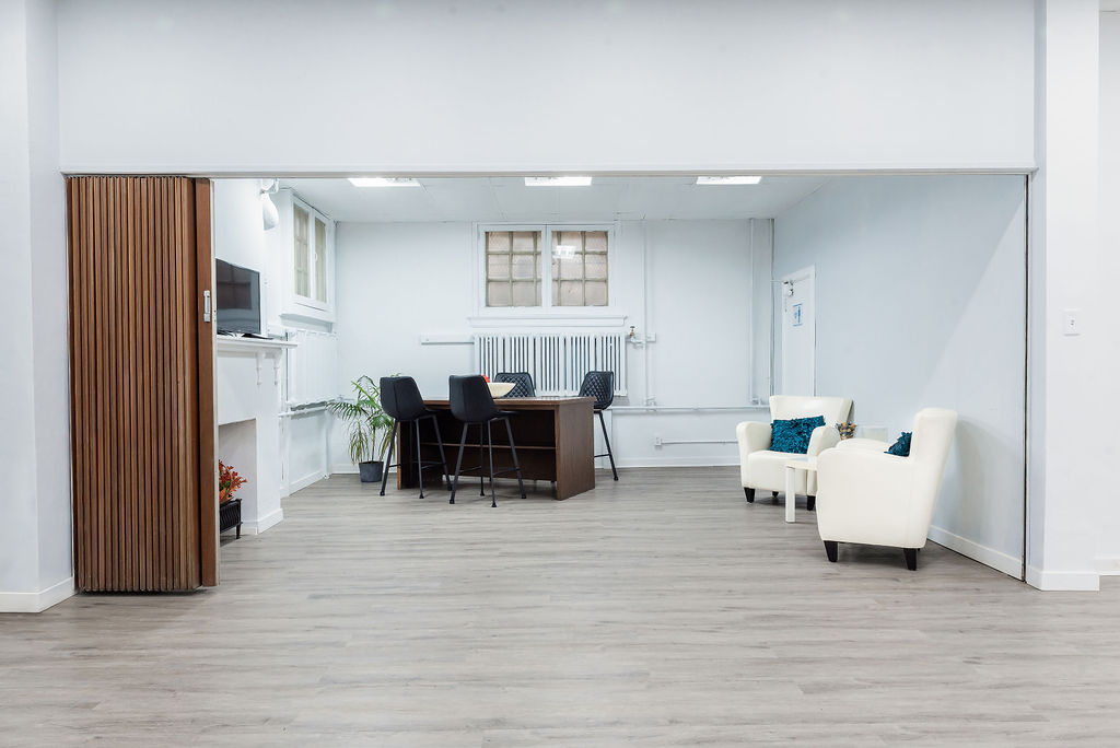 📱 Conference Room B: A spacious, flexible room that accommodates 20 with a large table or up to 30 without. Smart room dividers enable the space to be divided into three smaller areas, each comfortably accommodating 8–12 guests.