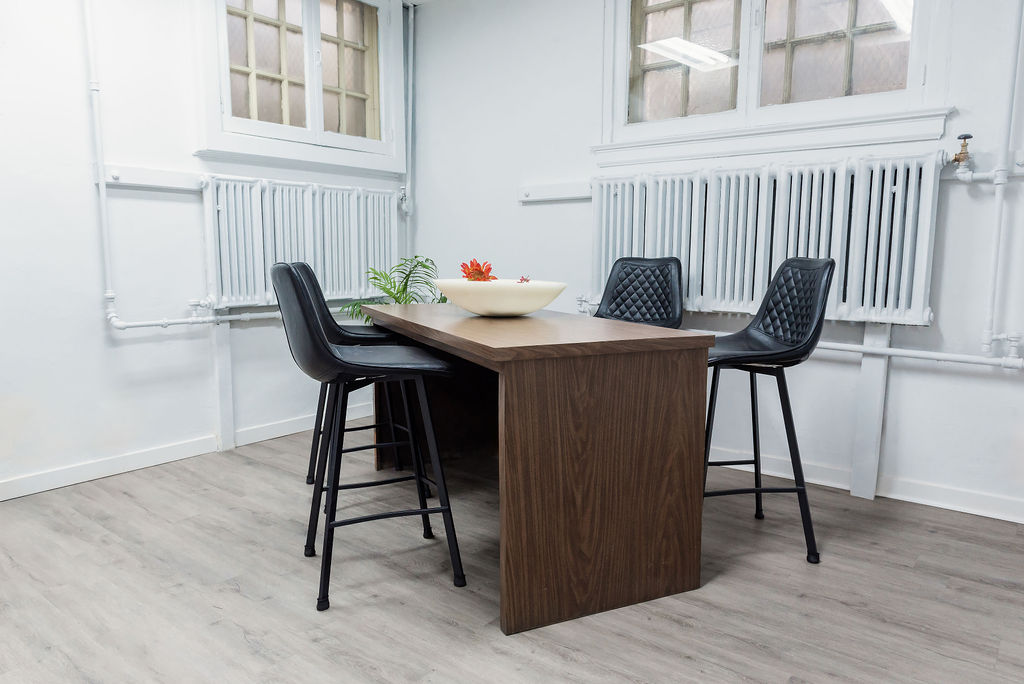 📞 Conference Room A: Accessed via modern staircases, this bright and intimate room accommodates 10 guests around a central table or up to 20 guests in an open format.